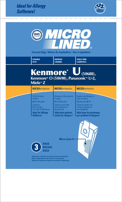 Kenmore 50688 U, 50690 O bags. 3 pack.